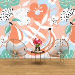 Murales que combinan diseños abstractos y florales. Todos nuestros murales son impresos en adhesivo y listo para instalar.