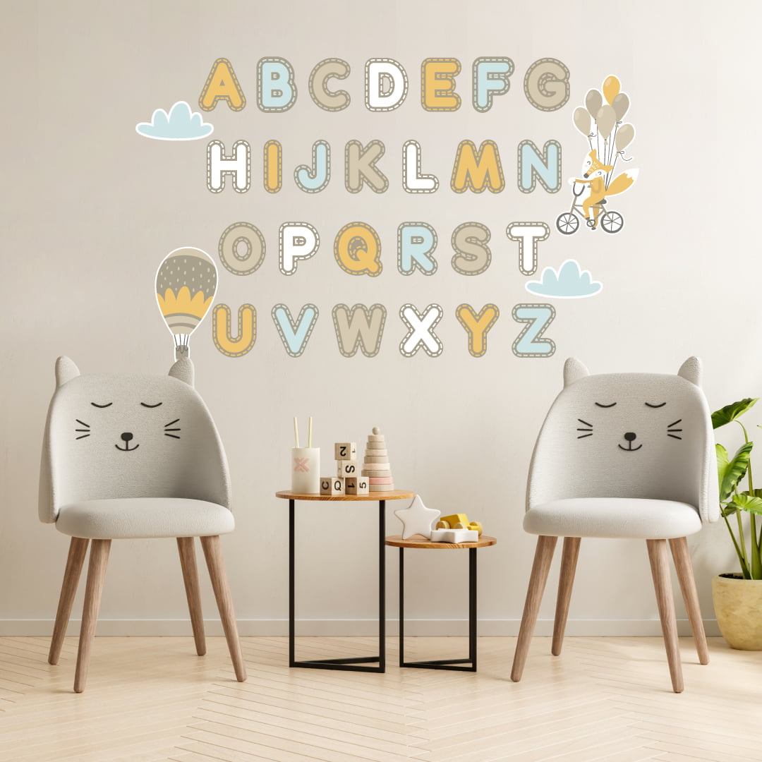 MATERIALES: El vinilo didáctico de abecedario es impreso en papel adhesivo y laminado para protegerla de rayones.